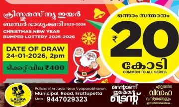ക്രിസ്തുമസ് - പുതുവത്സര ബംപർ; ഭാഗ്യവാനെ കണ്ടെത്തി; ഒന്നാം സമ്മാനം കോട്ടയത്ത്, XC 138455 എന്ന നമ്പറിന്