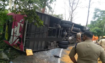 കുട്ടിക്കാനത്ത് ശബരിമല തീർഥാടകർ സഞ്ചരിച്ച ബസ് മറിഞ്ഞ് നിരവധി പേർക്ക് പരിക്ക്