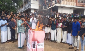 ലഹരി വിരുദ്ധ പോരാട്ടത്തിന്റെ ഭാഗമായി അരുവിത്തുറ കോളേജിൽ മനുഷ്യ ചങ്ങലയും ലഹരിയെ അഗ്നിക്കിരയാക്കലും