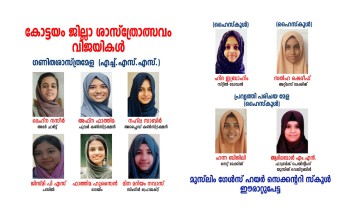 ഈരാറ്റുപേട്ട : കുറവിലങ്ങാട് നടന്ന കോട്ടയം റവന്യൂ ജില്ലാ ശാസ്ത്രോൽസവത്തിൽ 284 പോയിന്റ് നേടി മുസ്‌ലീം ഗേൾസ് ഹയർ സെക്കന്ററി സ്കൂൾ ജില്ലാ ചാംപ്യൻഷിപ്പ് നിലനിർത്തി. ഗണിത വിഭാഗത്തിൽ പങ്കെടുത്ത 26 ഇനങ്ങൾക്കും എ ഗ്രേഡ് ലഭിച്ചു. ഇതിൽ ഏഴെണ്ണത്തിന് ഒന്നാം സ്ഥാനത്തോടെയും മൂന്നെണ്ണത്തിന് മൂന്നാം സ്ഥാനത്തോടെയും ആകെ 118 പോയിന്റ് ലഭിച്ചു. അദർ ചാർട്ട്, പ്യൂവർ കൺസ്ട്രക്ഷൻ, അപ്ലൈഡ് കൺസ്ട്രക്ഷൻ, പസിൽ , ഗെയിം, സിംഗിൾ പ്രൊജക്ട്, സ്റ്റിൽ മോഡൽ എന്നീ ഇനങ്ങളിൽ മെഹ്‌ന നെസീർ , അഫ്ന ഫാത്തിമ, നഹ്‌ല സാബിർ , ജി സ്മി പി.എസ്., ഫാത്തിമ ഹുസൈൻ,മിന മറിയം നവാസ്, ഹിദ ഇബ്രാഹീം എന്നിവരാണ് ഒന്നാം സ്ഥാനം നേടിയത്.        സോഷ്യൽ സയൻസിലും 41 പോയിന്റുമായി സ്കൂൾ ഒന്നാമതെത്തി. പങ്കെടുത്ത 11 ഇനങ്ങളിൽ രണ്ട് ഒന്നാം സ്ഥാനവും ഒരു മൂന്നാം സ്ഥാനവും ഏഴെണ്ണത്തിന് എ ഗ്രേഡും ലഭിച്ചു. ഇതിൽ അറ്റ്ലസ് മേക്കിങ്, വർക്കിംഗ് മോഡൽ എന്നിവയിൽ സൽ ഹഷെരീഫ്, ഗൗതമി.കെ.വി , ആമിന ഷിനാസ് എന്നിവരാണ് ഒന്നാമതെത്തിയത്.   പ്രവ്യത്തി പരിചയ മേളയിൽ 61 പോയിന്റോടെ മൂന്നാം സ്ഥാനവും സ്കൂളിന് ലഭിച്ചു. പങ്കെടുത്ത 19 ഇനങ്ങളിൽ 11 എണ്ണത്തിന് എ ഗ്രേഡ് ലഭിച്ചു. ഇതിൽ നെറ്റ് മേക്കിംഗ്, ഫാബ്രിക് പെയിന്റിംഗ് യൂസിംഗ് വെജിറ്റബിൾ എന്നീ ഇനങ്ങളിൽ പങ്കെടുത്ത ഹന്ന ബിജിലി, ആദില മോൾ എം.എൻ എന്നിവരാണ് സംസ്ഥാന തല മൽസരത്തിൽ പങ്കെടുക്കാൻ അർഹതനേടിയത്. ശാസ്ത്ര, ഐ ടി വിഭാഗങ്ങളിലും സ്കൂളിൽ നിന്നും പങ്കെടുത്ത വിദ്യാർത്ഥികൾ എ ഗ്രേഡ് കരസ്ഥമാക്കി. വിവിധ ഇനങ്ങളിലായി 12 പേർ എറണാകുളത്ത് നടക്കാൻ പോകുന്ന സംസ്ഥാന തല ശാസ്ത്രോൽ വത്തിൽ കോട്ടയം ജില്ലയെ പ്രതിനിധീകരിച്ച്‌ പങ്കെടുക്കും.     മിടുക്കികളായ വിദ്യാർത്ഥിനികളെ കൂടുതൽ മികവുള്ളവരാക്കുവാൻ പരിശ്രമിച്ച അദ്ധ്യാപകരെയും , പിന്തുണയേകിയ പൂർവ്വ വിദ്യാർത്ഥിനികളെയും , മികച്ച നേട്ടത്തോടെ സ്കൂളിന്റെയും , നാടിന്റെയും അഭിമാനമുയർത്തിയ വിദ്യാർത്ഥിനികളെയും നഗരസഭാധ്യക്ഷ സുഹു.റാ അബ്ദുൽ ഖാദർ, വിദ്യാഭ്യാസ സമിതി ചെയർ പേഴ്സൺ റിസ്വാന സവാദ്, വാർഡ് കൗൺസിലർ പി.എം. അബ്ദുൽ ഖാദർ,മാനേജർ പ്രൊഫ.എം.കെ ഫരീദ്, പി.റ്റി.എ. പ്രസിഡന്റ് ബൽക്കീസ് നവാസ്, വൈസ് പ്രസിഡന്റ് അനസ് പീടിയേക്കൽ എന്നിവർ അഭിനന്ദിച്ചു.